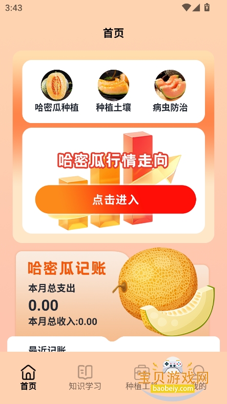 发财哈密瓜赚钱软件下载,一款可以哈密瓜种植辅助软件,通过哈密瓜赚钱的商户,可以通过该软件了解种植技巧,计算账目,账单等,发财哈密瓜赚钱软件工具整合种植指导、财务管理、知识学习与趣味问答四大核心模块,针对种植户的生产需求与爱好者的兴趣需求,提供精准、实用的功能支持,既助力种植户科学种植、提升哈密瓜品质与收益,也让水果爱好者深入了解哈密瓜知识、感受水果世界的乐趣。