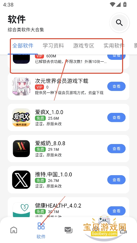 1、进入软件板块,提供大量软件资源,类型,合集等,可以根据标签筛选