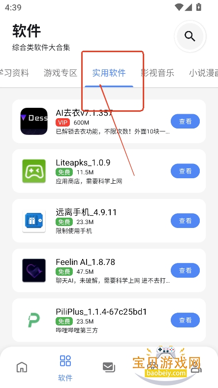 2、例如切换到“实用软件”板块,提供超多软件资源