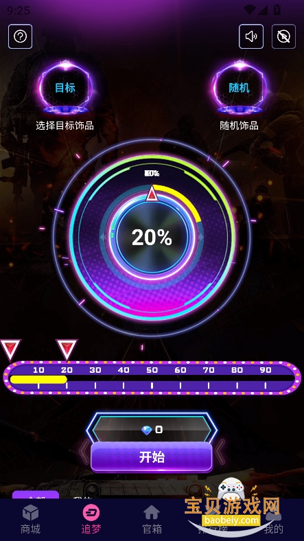 2、进入“追梦”板块,可以模拟抽奖,抽选喜欢的饰品