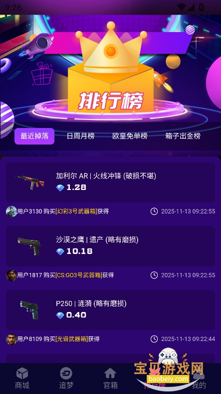 4、进入“排行榜”可以查看近期交易饰品热榜