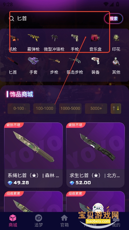 3、或者直接关键词检索,定位价格,类型,精准定位需要的饰品进行购买
