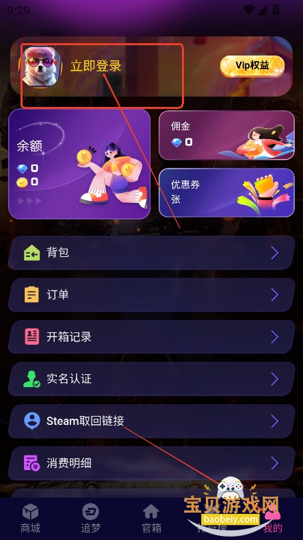 1、进入我的界面,点击立即登录