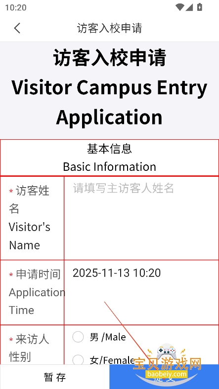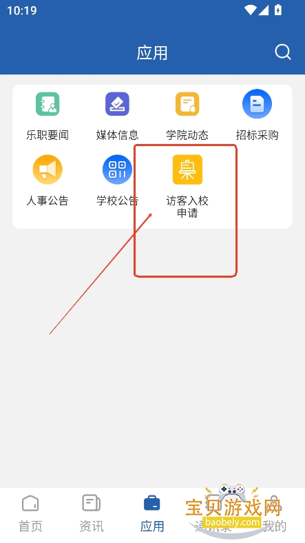 1、进入应用界面,点击“访客入校申请”