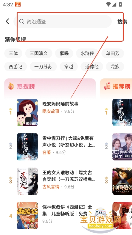 3、或者直接搜索框输入关键词,精准检索喜欢的有声内容