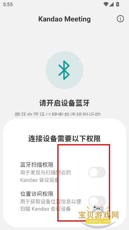 请确保您的手机已授予蓝牙与位置信息权以便能够正常搜索到KandaoMeeting设备。