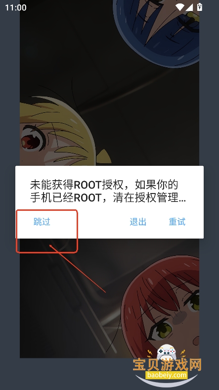 1、在宝贝游戏网下载安装开机动画修改器手机版,进入界面,如需root,点击跳过即可