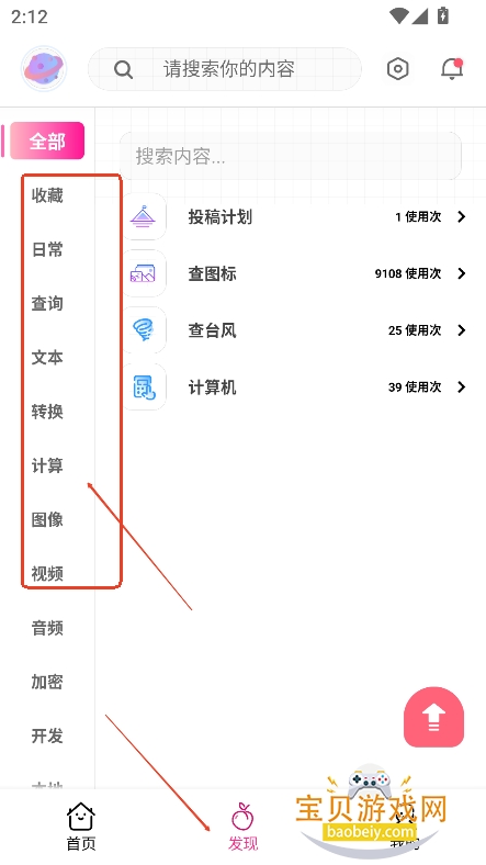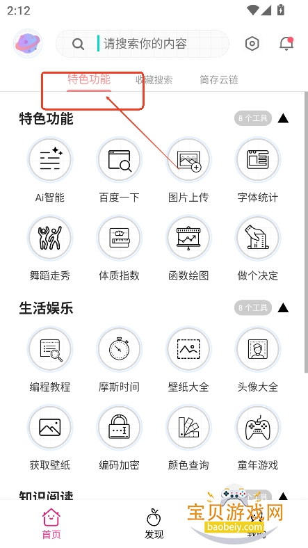 2、进入发现板块,还有更详细的功能分类,明细等,基本覆盖日常,工作,生活,娱乐等功能