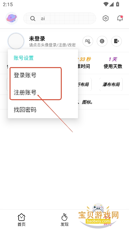 2、选择登录账号,或者注册账号,有账号的可以直接选择登录账号