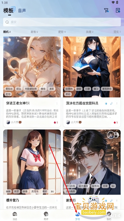 进入首页,切换到梦境板块,在梦境广场筛选喜欢的虚拟角色