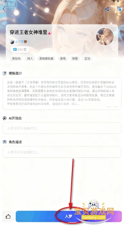 精准聚焦梦女需求:专为梦女体验设计,角色定制与剧情设定深度贴合该群体偏好,满足对专属恋爱关系的想象与追求。
