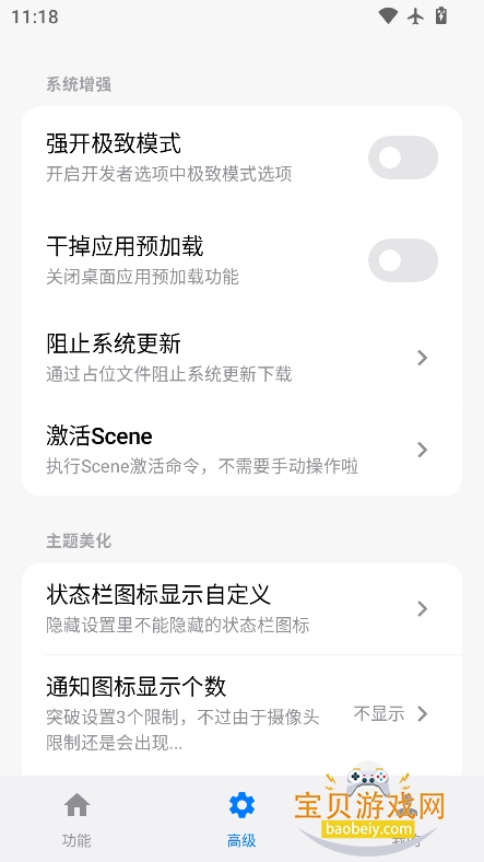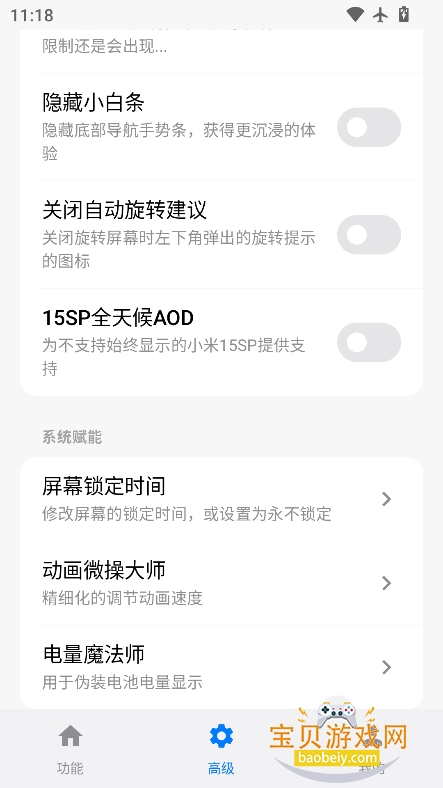 4、进入高级功能板块,还有更多玩机功能,可以增强使用体验