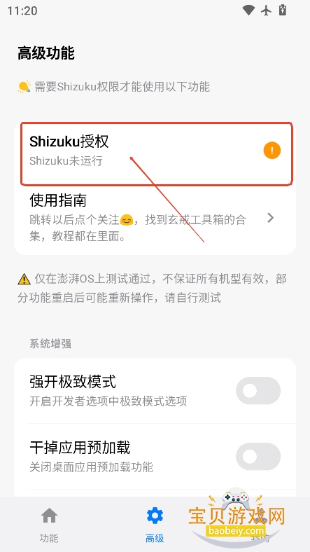 需要配合shizuku软件一起使用,如若没有,请按照页面教程进行下载