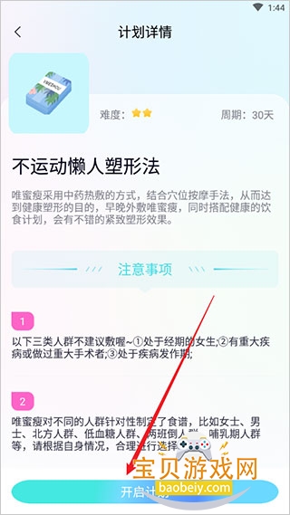 3、切记观看注意事项,如若不符合,则换其它方案,不然就点击【开始计划】