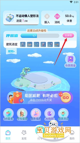 2、每日进行记饮食、记运动、记体重打卡即可获取呼啦值;