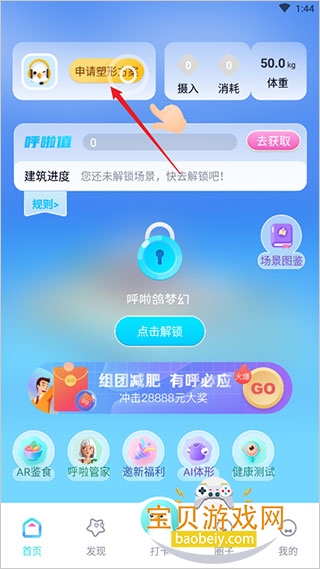 1、在本站下载并安装呼啦鸽app,在界面内找到【申请塑形方案】,并点击;