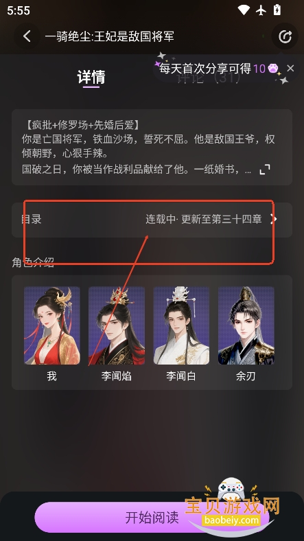 5、或者直接进入喜欢的小说界面,点击开始阅读