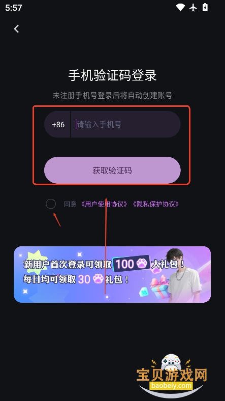 2、直接输入手机号,接收验证码,就可以登录成功,新手机号自动注册