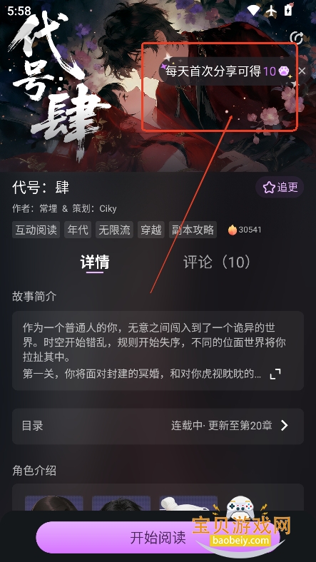 3、或者分享喜欢的小说,每天都可以获得10乐园币