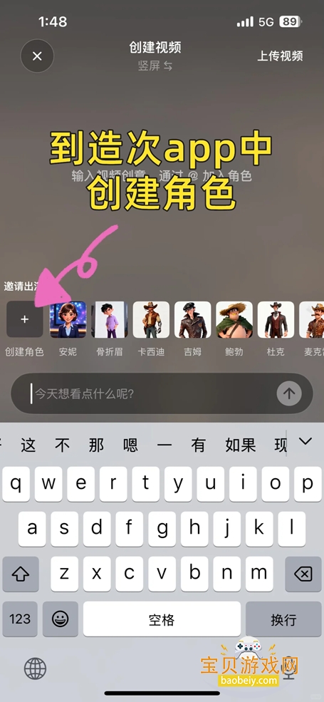 2、在文本框输入关键词,确定想要生成的画面,点击+号创建角色
