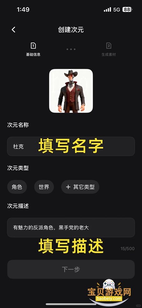 3、填写名字,描述等内容