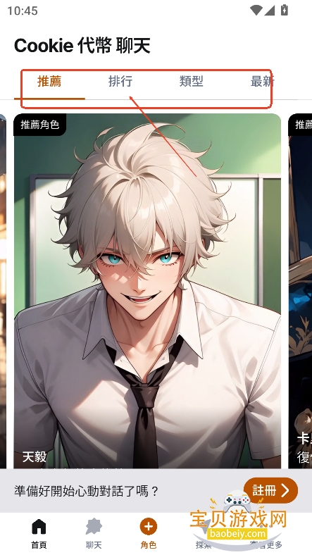 1、进入首页,可以筛选角色,角色无限制,大家可以在推荐板块左右滑动筛选