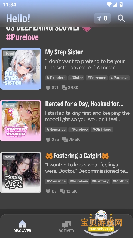 5.全功能免费开放:新用户注册即可获得无限免费访问权限,无需积分兑换或付费订阅,聊天机器人互动、角色体验、游戏畅玩、漫画小说阅读等核心功能全部免费解锁,降低娱乐体验门槛。