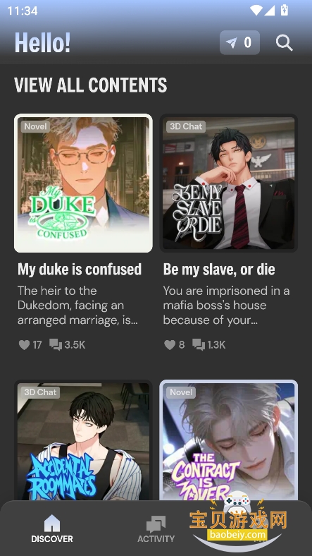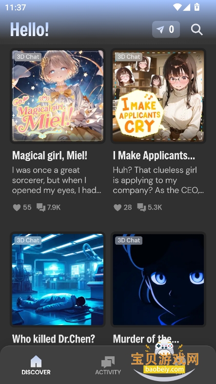 1.全场景娱乐一站式覆盖:将聊天、角色互动、游戏、故事生成、漫画小说等多种娱乐形式整合,用户无需下载多个APP,通过Hey.D即可满足多元娱乐需求,极大提升使用便捷性。