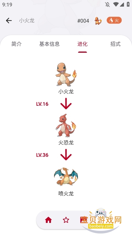 2、进入详情页后,我们可以查看有关小火龙的所有信息;