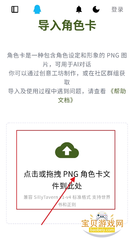 3、将角色卡文件拖入到该位置,就可以直接使用