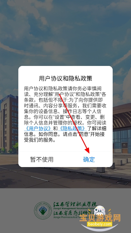 1、在宝贝游戏网下载安装江西管职院安卓版,点击“同意”进入