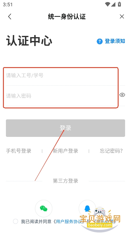 2、进入界面,直接输入学号,学工号,或者账号密码,点击登录