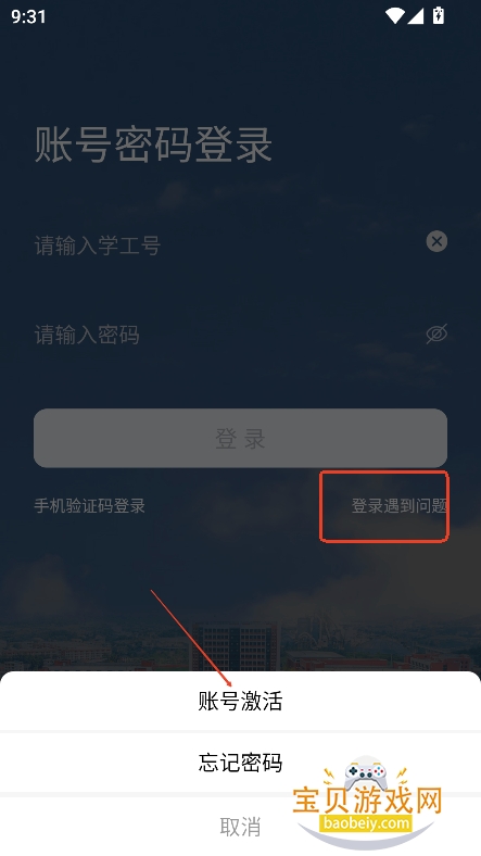 1、进入登录界面,点击登录遇到问题,选择账号激活