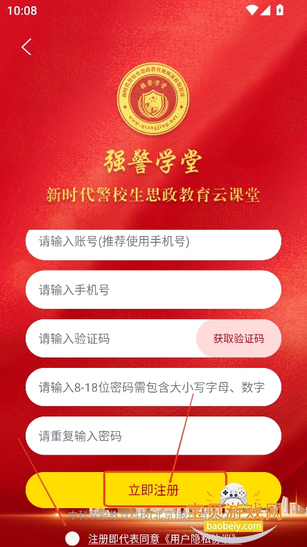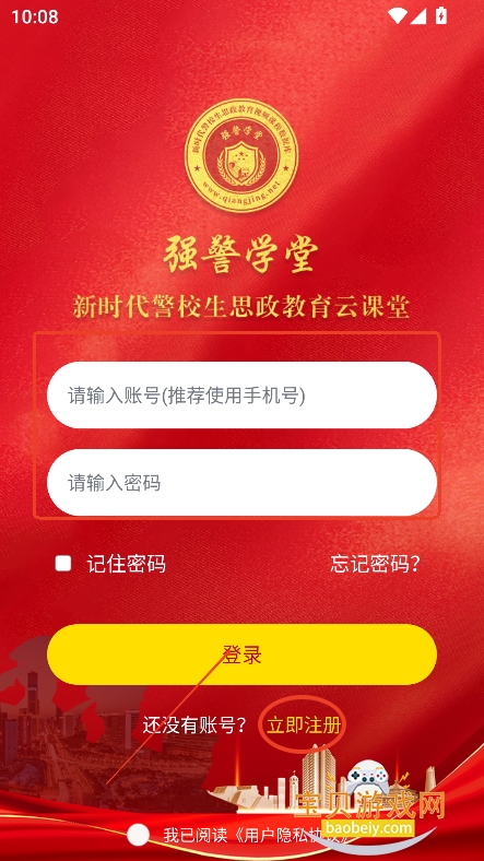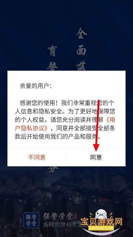 1、在宝贝游戏网下载安装强警学堂安卓版,点击“同意”进入