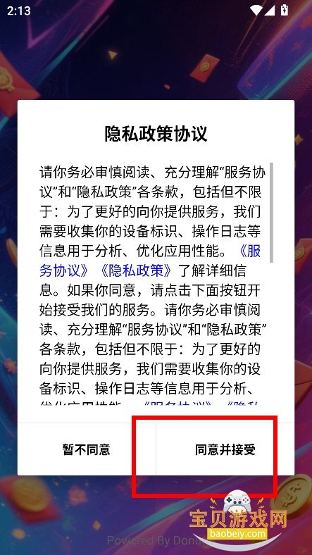1、在宝贝游戏网下载安装好玩商店安卓版,点击“同意并接受”进入