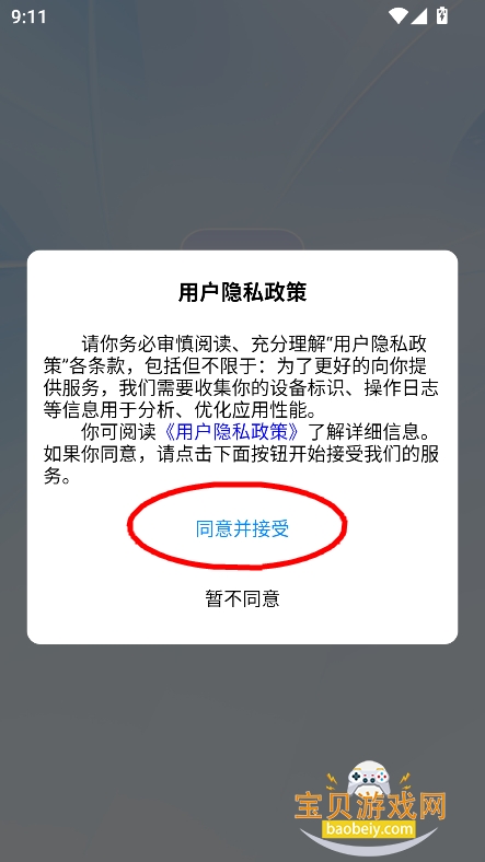 1、在宝贝游戏网下载安装紫金AI手机版,点击“同意”进入