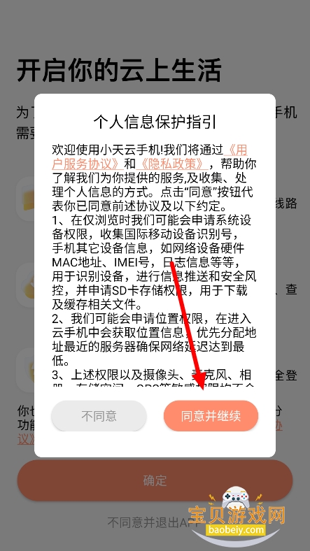1、在宝贝游戏网下载安装,点击“同意并继续”进入