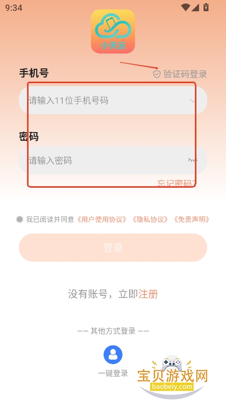 2、进入登录界面,输入账号密码,点击登录,或者直接手机验证登录