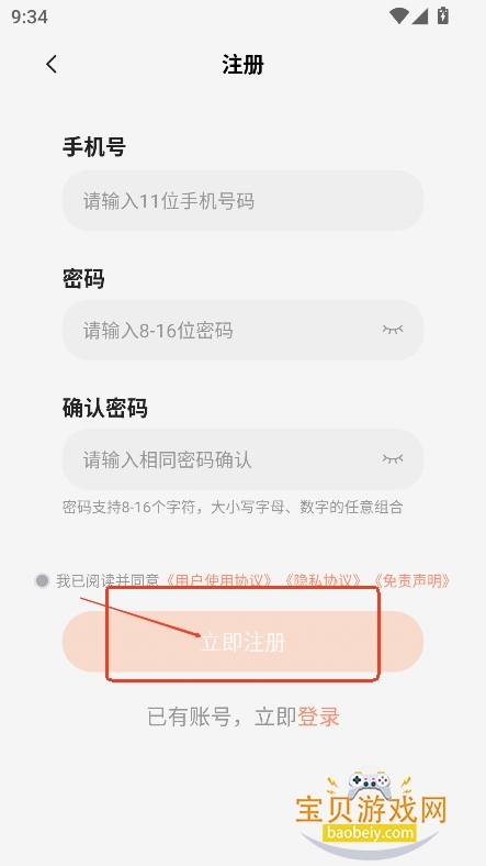 3、新用户直接点击注册按钮,输入基本信息,完成注册流程