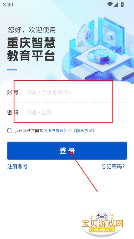 2、输入账号密码,点击登录,勾选隐私协议,就可以登录成功