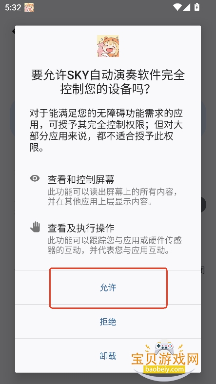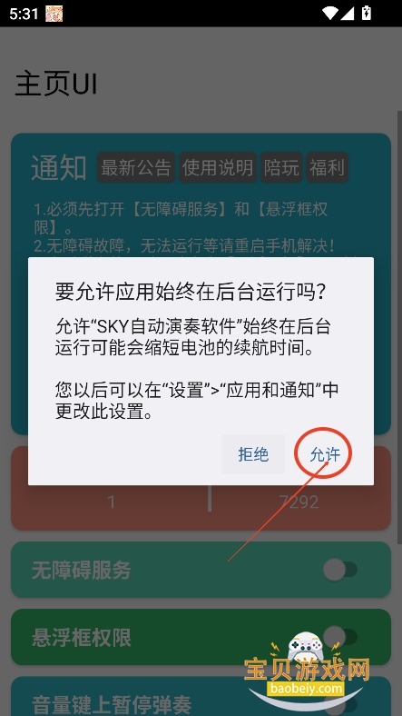 1、在宝贝游戏网下载安装,进入界面,首先去允许授权