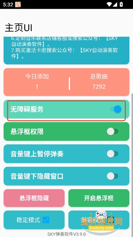 3.操作简单易上手:界面设计简洁直观,核心功能入口清晰,新手玩家只需完成权限设置,即可一键启动演奏,无需复杂学习成本。