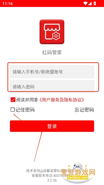 2、进入登录界面,输入账号密码,点击登录,勾选隐私协议