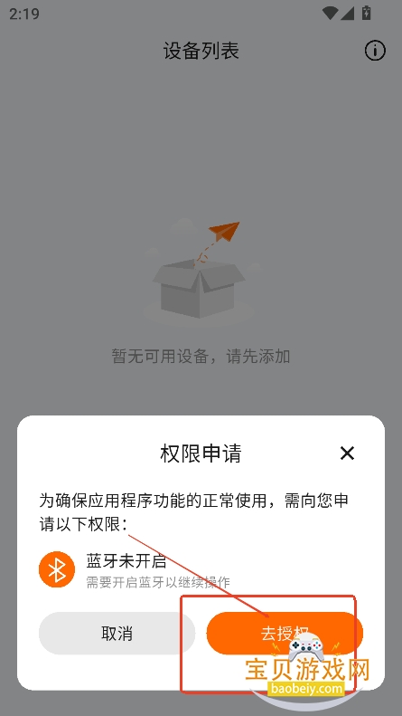 3、最后点击去授权,然后开启蓝牙进行连接即可