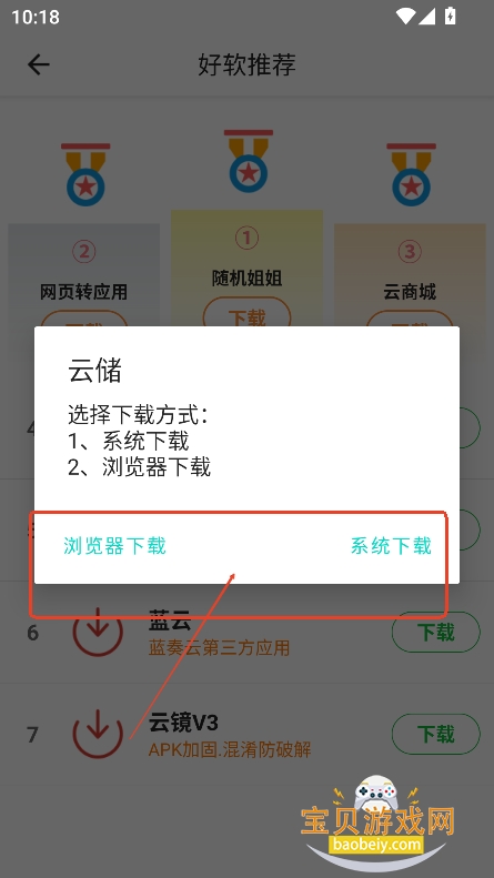 3、选择喜欢的软件,点击下载,支持浏览器下载,或者系统下载,任意选择一种方便的下载方式即可
