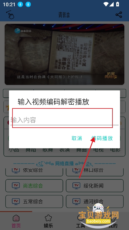 4、如若点击解码播放,可以在文本框输入内容,点击解码播放,可以播放你喜欢的解码视频内容