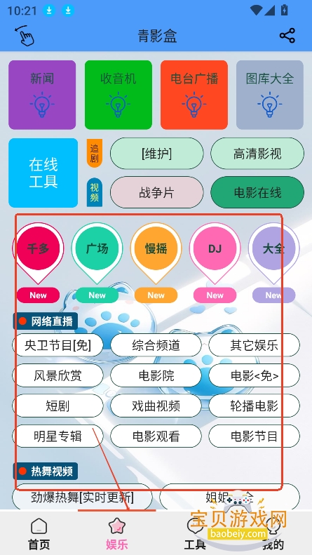 5、进入娱乐板块,提供超多热舞视频,劲爆视频,网络直播等