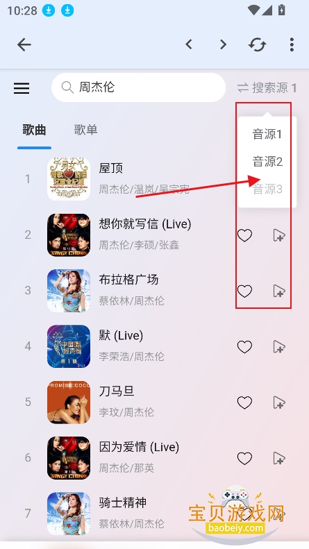 6、点击右侧搜索源,还可以切换音乐源,解锁更多音乐体验