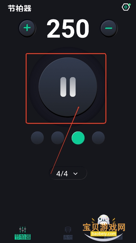 1、进入节拍器,点击开启,可以自动调整,或者自定义调整上方参数