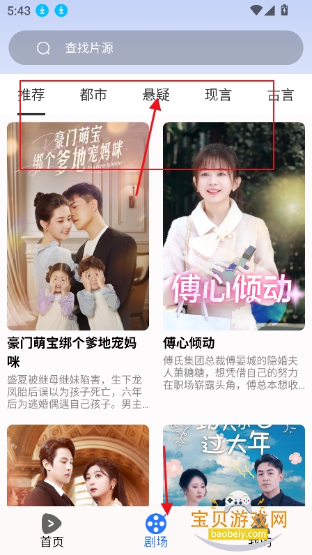 3、进入剧场,可以筛选短剧类型,
